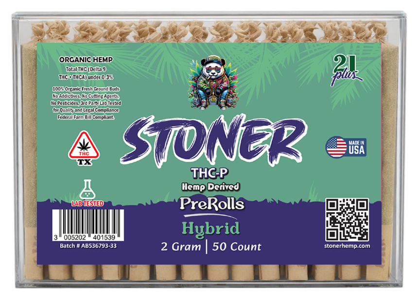 Experience the exceptional quality and potency of Stoner THCP Pre-Rolls. Each piece is an expertly crafted Pre-Roll filled with premium THCP rich flower. These Pre-Rolls provide a potent and smooth smoking experience that is second to none. Whether you’re looking to unwind after a long day or seeking therapeutic benefits, Stoner THCP Pre-Rolls deliver consistent high-quality results everytime.It's available in 2 Gram, 50 Count 3 Strains